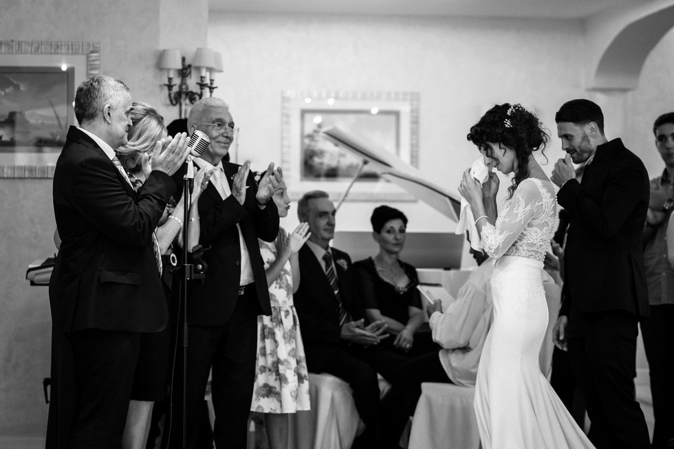 Errico nel vedere la sua sposa non riesce a trattenere l'emozione tanto da andarle incontro. Le testimoni tutte al femminile, colorano la chiesa con soavi abiti.